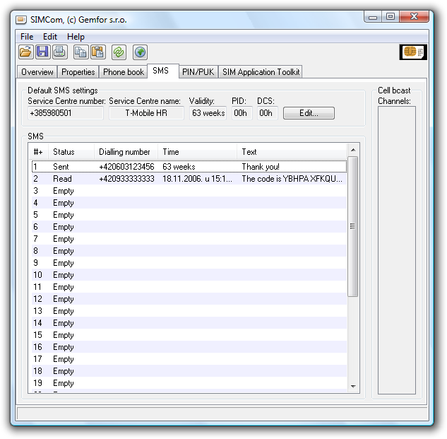 SIMCom is a software application for SIM and USIM card management using a smart card reader.